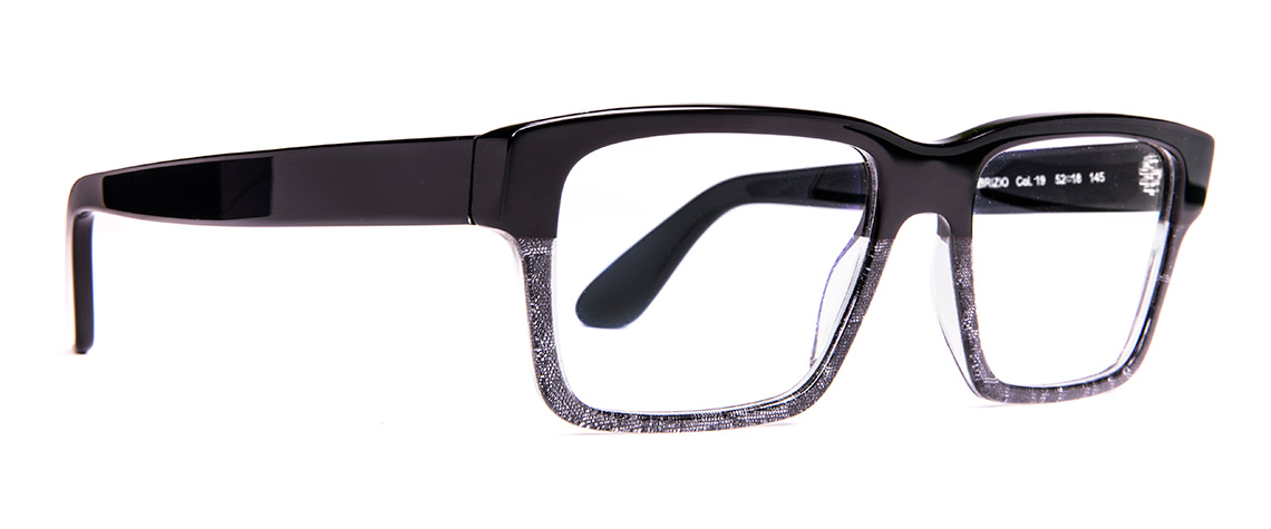 Acetato di lastra di cellulosa e le sapienti mani di artigiani italiani sono alla base della fabbricazione di questa montatura. La semplicità della forma unita alla sottigliezza della materia rendono questo modello leggero e confortevole. Tuttavia l’essenzialità non trascura un tocco di fantasia come i fregi posti sul frontale o le tonalità cromatiche disponibili. Si passa da un vivido blu con effetto trasparenza agli splendidi bicolor nero/azzurro e granata/bianco per finire con il più classico esterno nero e interno cristallo. Queste ultime colorazioni sono caratterizzate da un bellissimo effetto opaco.